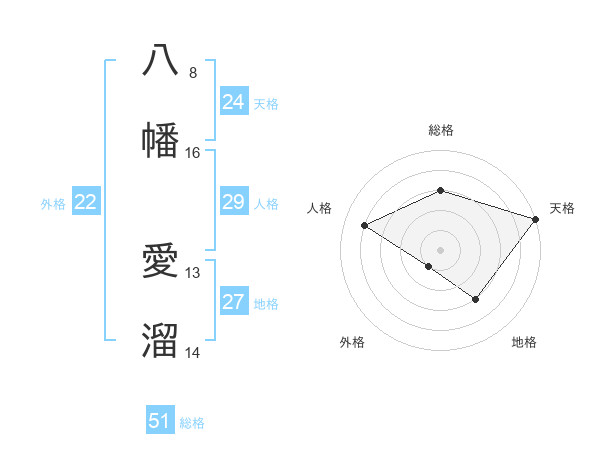 八幡 愛溜さんを姓名の画数から五運を鑑定
