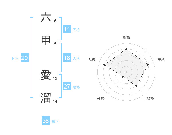 六甲 愛溜さんの総格は38画の4点!
