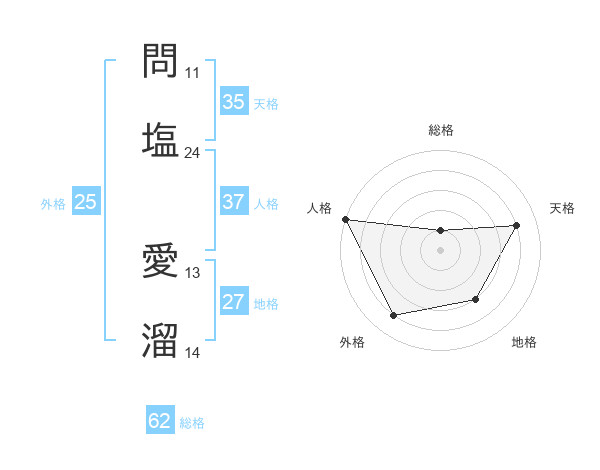 問塩 愛溜さんの天格は35画の4点!