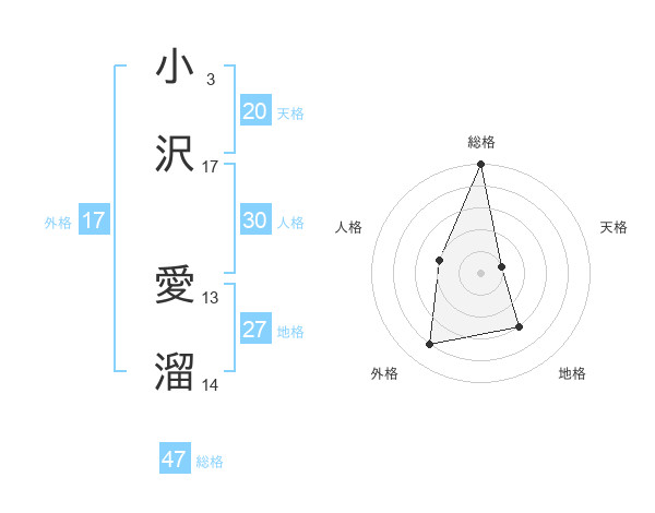 小沢 愛溜さんの総格は47画の5点!