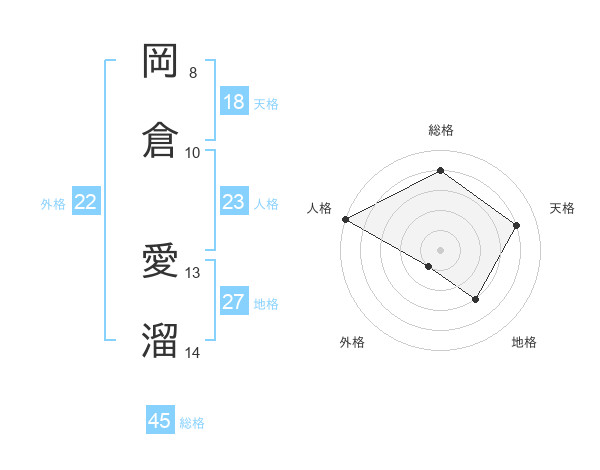 岡倉 愛溜さんを姓名の画数から五運を鑑定