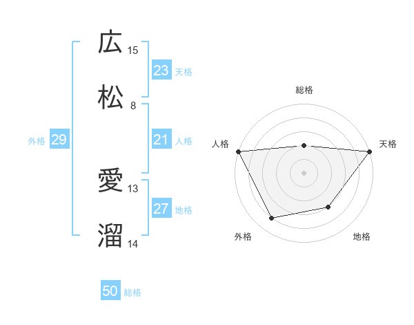 広松 愛溜さんの総格は50画の2点!