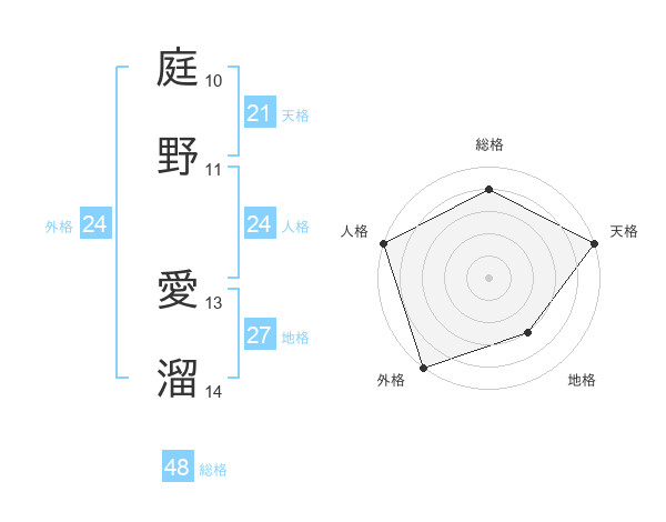 庭野 愛溜さんを姓名の画数から五運を鑑定