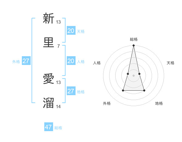 新里 愛溜さんを姓名の画数から五運を鑑定