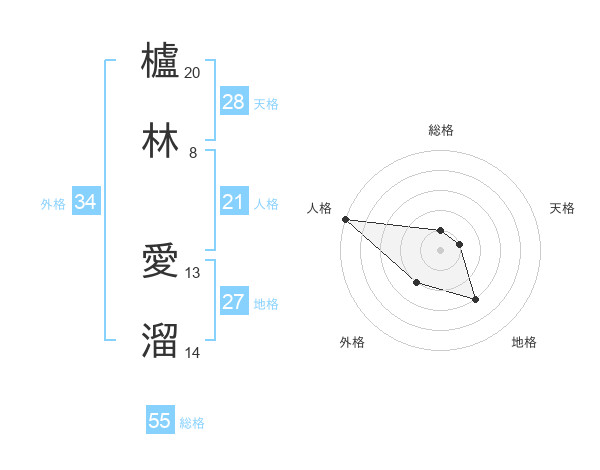 櫨林 愛溜さんを姓名の画数から五運を鑑定