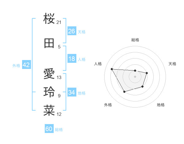 桜田 愛玲菜さんを姓名の画数から五運を鑑定