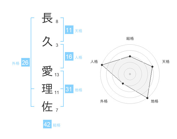 長久 愛理佐さんの天格は11画の4点!