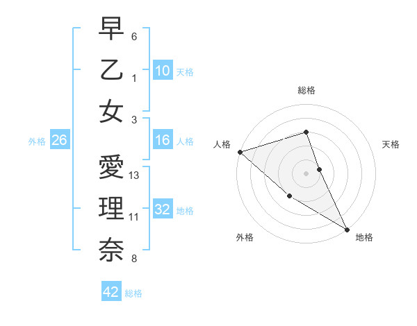 早乙女 愛理奈さんを姓名の画数から五運を鑑定