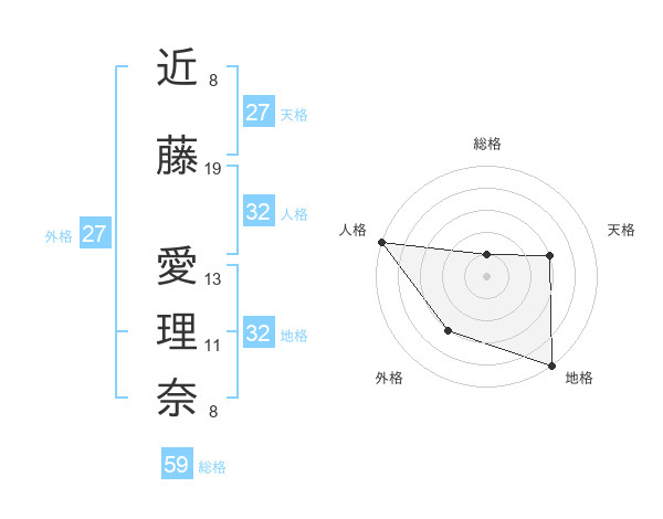 近藤 愛理奈さんの総格は59画の1点