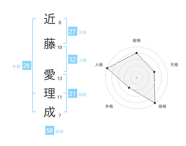 近藤 愛理成さんを姓名の画数から五運を鑑定