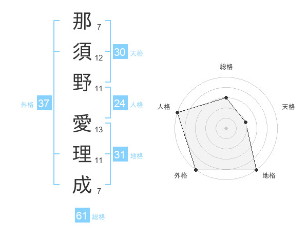 那須野 愛理成さんの外格は37画の5点!