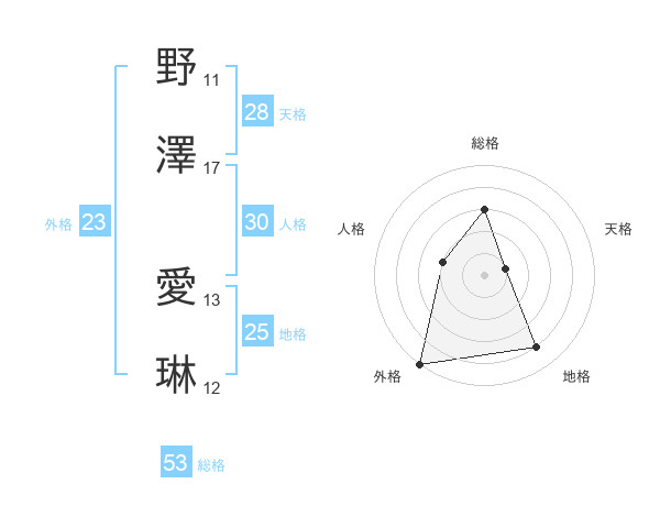 野澤 愛琳さんを姓名の画数から五運を鑑定