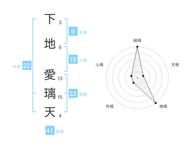 下地 愛璃天さんを姓名の画数から五運を鑑定