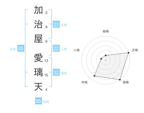 加治屋 愛璃天さんを姓名の画数から五運を鑑定