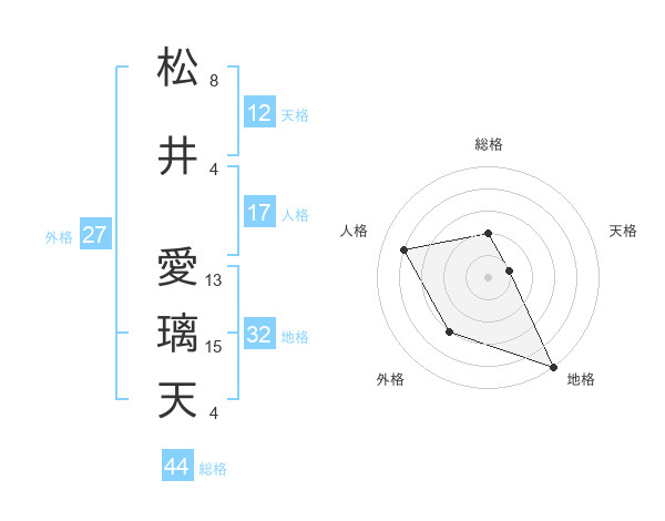松井 愛璃天さんを姓名の画数から五運を鑑定