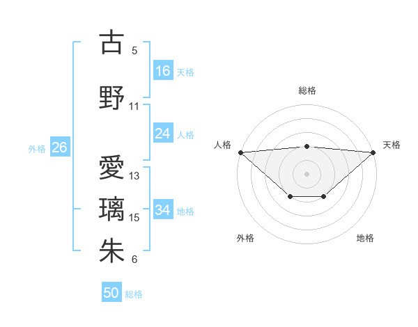 古野 愛璃朱さんの総格は50画の2点!
