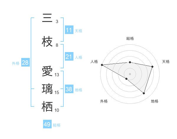 三枝 愛璃栖さんの天格は11画の4点!