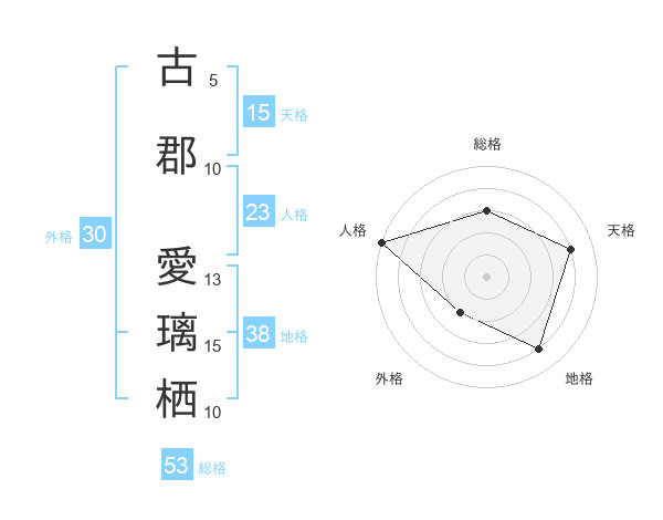 古郡 愛璃栖さんの総格は53画の3点!