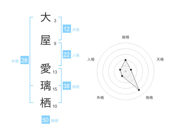 大屋 愛璃栖さんを姓名の画数から五運を鑑定