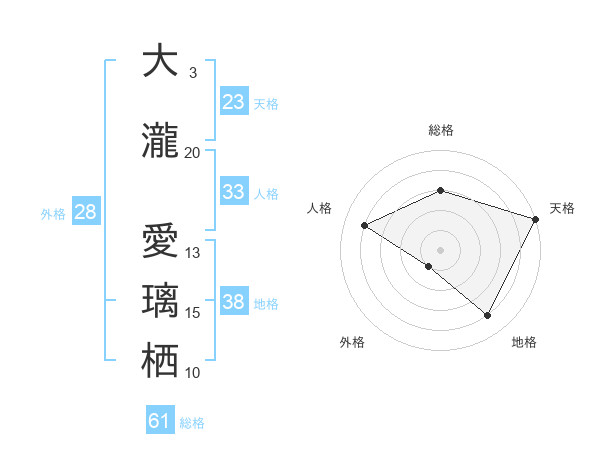 大瀧 愛璃栖さんの総格は61画の3点!