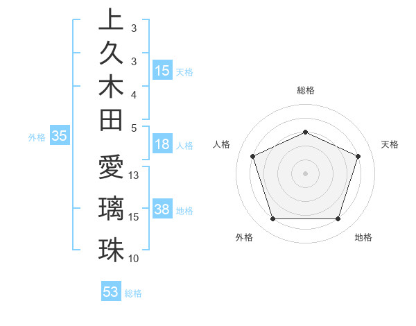 上久木田 愛璃珠さんの総格は53画の3点