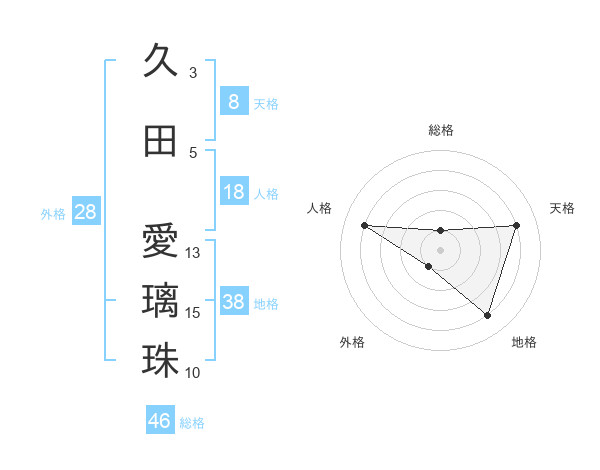 久田 愛璃珠さんを姓名の画数から五運を鑑定