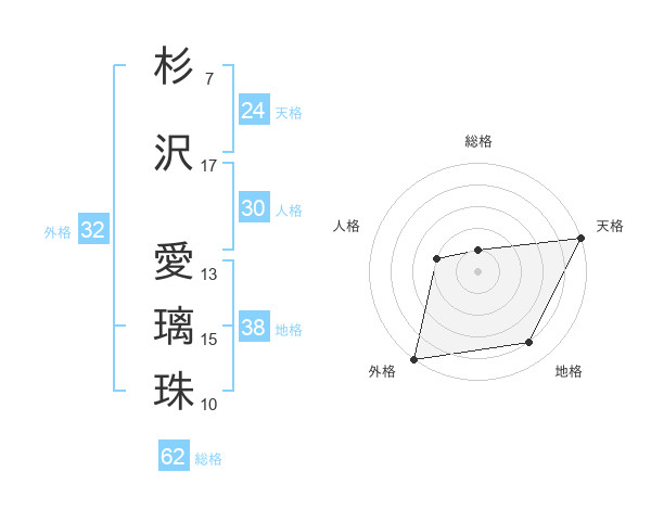 杉沢 愛璃珠さんを姓名の画数から五運を鑑定