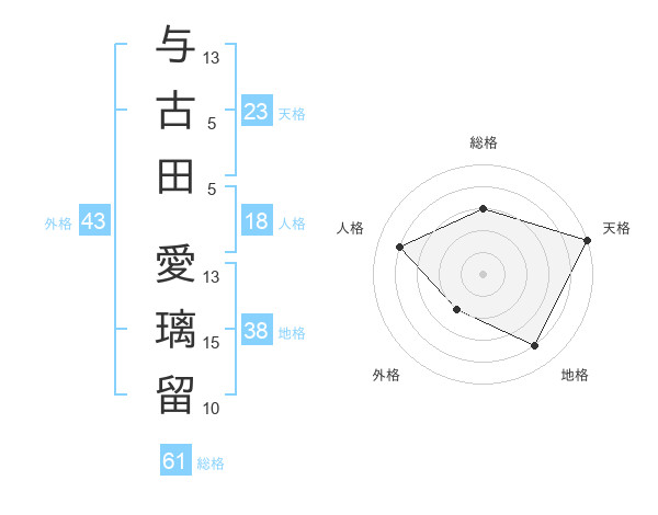 与古田 愛璃留さんの天格は23画の5点!
