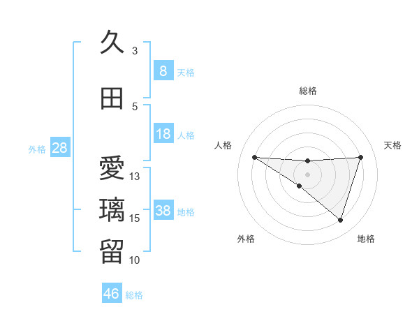 久田 愛璃留さんを姓名の画数から五運を鑑定