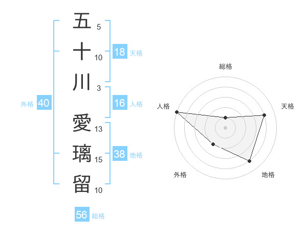 五十川 愛璃留さんの天格は18画の4点!