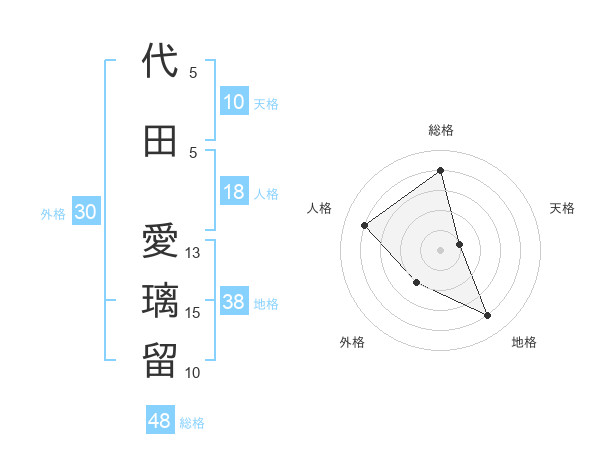代田 愛璃留さんの総格は48画の4点!