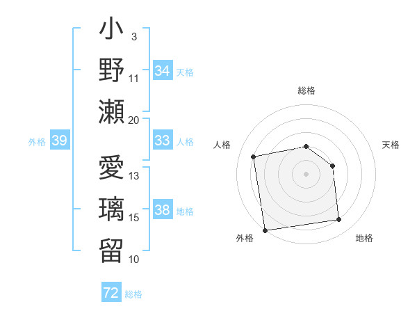 小野瀬 愛璃留さんを姓名の画数から五運を鑑定