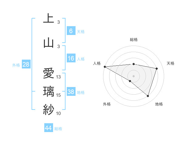 上山 愛璃紗さんの天格は6画の4点!