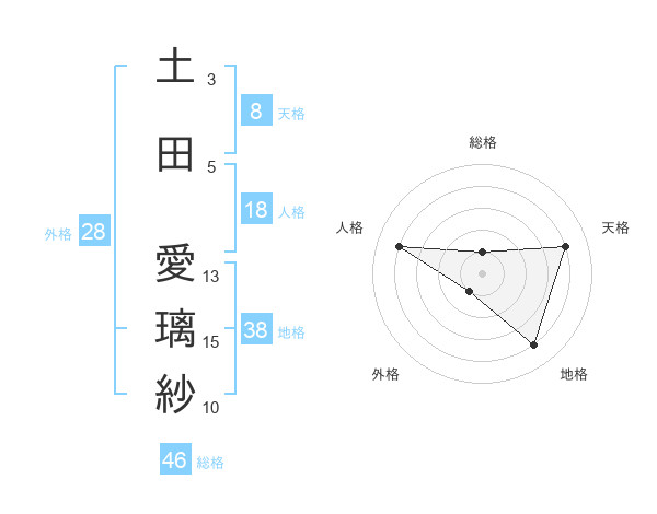 土田 愛璃紗さんを姓名の画数から五運を鑑定