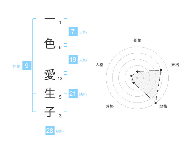 一色 愛生子さんを姓名の画数から五運を鑑定