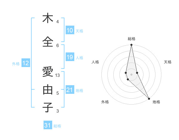 木全 愛由子さんを姓名の画数から五運を鑑定