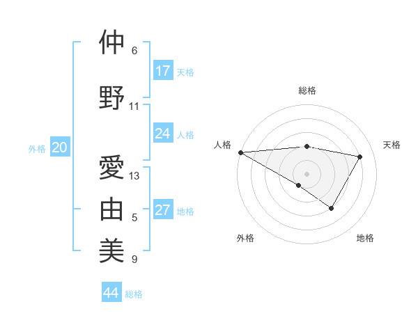 仲野 愛由美さんを姓名の画数から五運を鑑定