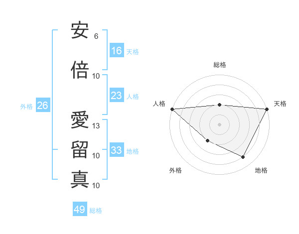 安倍 愛留真さんの総格は49画の2点!