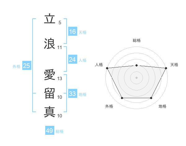 立浪 愛留真さんの総格は49画の2点