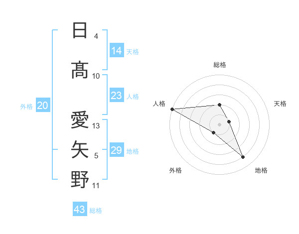日髙 愛矢野さんを姓名の画数から五運を鑑定
