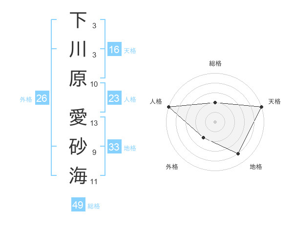 下川原 愛砂海さんを姓名の画数から五運を鑑定