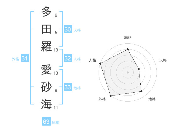 多田羅 愛砂海さんを姓名の画数から五運を鑑定