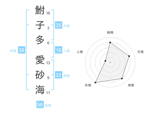 鮒子多 愛砂海さんを姓名の画数から五運を鑑定