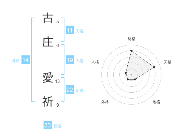 古庄 愛祈さんを姓名の画数から五運を鑑定