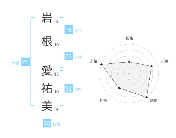 岩根 愛祐美さんを姓名の画数から五運を鑑定