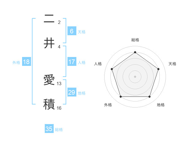 二井 愛積さんの総格は35画の4点!