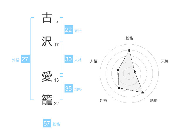 古沢 愛籠さんを姓名の画数から五運を鑑定