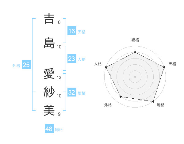 吉島 愛紗美さんを姓名の画数から五運を鑑定