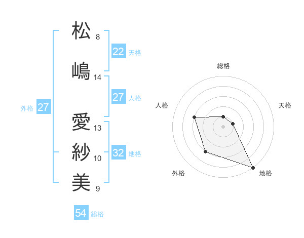 松嶋 愛紗美さんを姓名の画数から五運を鑑定