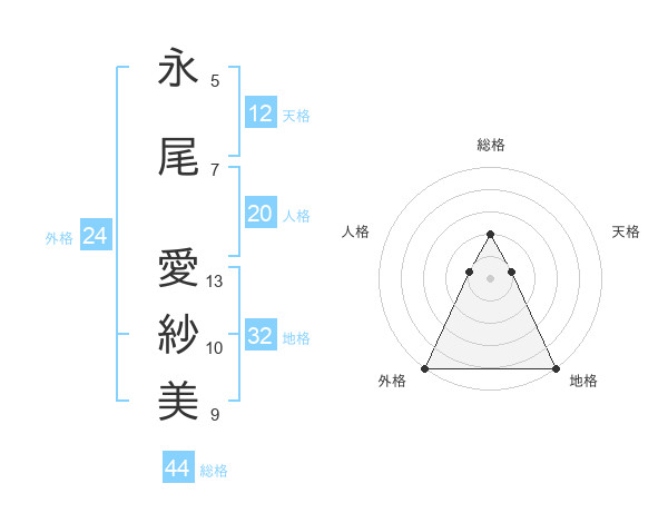 永尾 愛紗美さんの総格は44画の2点!